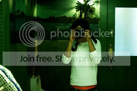 Here I carrying my camera around. A candid photo in a bathroom in Downtown Disney