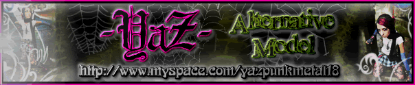 Well I'm an amateur model but now that I'm part of Model Mayhem I think it will help me to get more experience in the modeling field. Body Modifications/Tattoos/Piercings -Nose Piercing -Belly Bottom Piercing -Helix Piercing (Ear) -Filtrum Piercing (Upper lip) -2 Monroe Piercings -2g plug on each ear -10g piercings on each ear -Tribal/Dragon tattoo on my lower back -3 bats on each of my hips -Medusa tattoo covering my leg (upper part) -Experience Fashionshows *Marilyn Botique Fashion Show *Hairstylist Fashion Show Photoshoots *Photoshoot with Imago Fotografia (CR) *Photoshoot with Migue Zu~iga (CR) *Photoshoot with Pablo Montiel (CR) *Photoshoot with Fedelafede (CR) *Photoshoot with Robert Carlos (CR) *Photoshoot with Ra Rivera (CR) *Photoshoot with Tattered Productions (CANADA) *Photoshoot with Melissa Chaves (CR) -AlloyLatex Photoshoot (USA) *Marilyn Botique Photoshoot (CR) *Photoshoot by Carl Roberts (#190797) (USA) *Photoshoot for Time To Kill Merchandise (USA) Owner and creator of Gorgeous Freaks: http://www.facebook.com/GorgeousFreaks http://gorgeousfreaksmodels.webs.com Crazy Bitch Magnet Featured Model: http://crazybitchmagnet.com/ Studs & Punks Uk Merch: http://www.studsandpunks.co.uk/ http://www.facebook.com/album.php?fbid=138429666203425&id=137943882918670&aid=22837 Time To Kill (Band) Merch Model: http://www.myspace.com/ttk2007 http://www.facebook.com/album.php?fbid=138230346223357&id=137943882918670&aid=22783 Elite Online Magazine: http://eliteonlinemagazine.com/Issue06/Issue06.html Model for the Mutilador Ezine 2011 Calendar: http://www.mutilador.com/ http://www.facebook.com/Mutiladorezine?ref=ts Model for the band Quitting Heaven http://www.quittingheaven.com/model_yaz.html Marilyn Botique: http://www.marilyn.cr/fashion.html ChepeStyle.com: http://www.chepestyle.com/2010/12/kustom-cherries.html http://www.fedelafede.com/blog/?p=99 Pin Up's For Felines Book http://www.pinupsforfelines.com/ Soon also model for Alternative Accesories: http://www.facebook.com/alternativeaccessories1 http://alternativeaccessories.weebly.com/ The Catacombs Clothing: http://www.catacombscds.com/ My Personal Links: Soon: http://www.YaZModel.com http://www.facebook.com/YaZPunK http://www.facebook.com/YaZ.AltModel