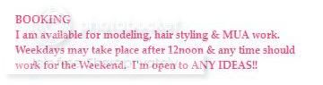 I am a working make-up artist in southern California and I would love to work with you on any shoots that you might have coming up. I can work around your schedule, however, there are some days that I just cannot work because I have a part-time job. I have a full blown make-up and hair kit, but I am not the strongest in hair... make-up is definitely my strong point.