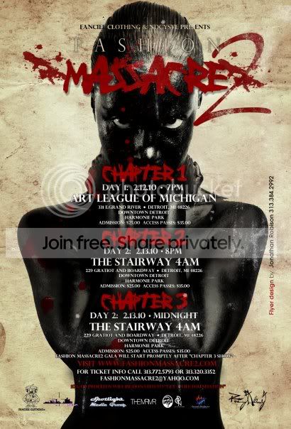 fashion show fisher theater 2007 (take overr) fashion show howard johnson 2007 (take over 2) fashion show G.M building 2007 (essiental essence spa) fashion show club preve' 2007 ( hair fashion explosion) fashion show fiisher theater 2008 (football, fashion phi) fashion show Campius Martuis 2008 (detroit fashion week summer breeze) fashion show Cobo Hall 2008 (tangible illussion) fashion show vianove 2008 ( next level fashion ) fashion show Cobo Hall 2009 (fashion massacre) fashion show marriott hotel 2009 ( celebration of love) fashion show club tv 2009 (pajama jam) fashion show Afrcian Amercian Museum (2009) fashion show Detroit Fashion Week (2009) fashion show Metals in Time (2009) fashion shoot Club Maestro's " Couture Dreams" (2010) fashion show Detroit Runway Affair (2010) fashion show Massacre 2 (2010) fashion show artist village (2010) fashion show dwol (2010) fashion show white party (glass house) (2010) body paint fashion show (dirti martini) (2010) body paint fashion show (uptown grille) (2010) fashion show vanity affair 2010 body paint fashion show (m bar go) 2010 white party fashion show (chene park) 2011 walk on water (downtown detroit) 2011