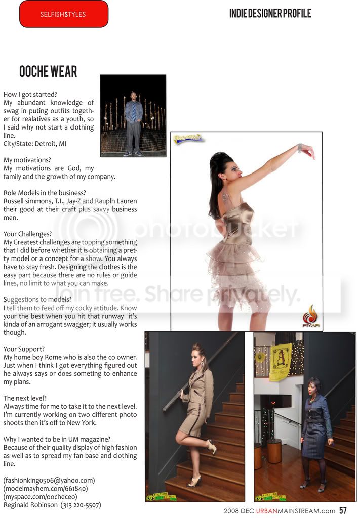 My Shoe Closet 416 S. Washington, Royal Oak, MI 48067 -- 248.542.1665 http://www.myshoecloset.biz Noir Leather 124 West 4th St., Royal Oak, MI 48067 -- 248.541.3979 myspace.com/pazuzukitty13 The Shoe Lady 18090 Wyoming St., Detroit, MI 48221 -- 313.863.7463 Shoe House Blvd 19452 Livernois Ave, Detroit, MI 48221 -- 313.341-2121 JEWELRY DESIGNERS Nneka Jackson - B-Flyy Creations -- 313.989.5340 nnekaj@gmail.com -- http://www.myspace.com/nbutterfly Kieara Patterson - La'Jah Accessories 313.452.5336 -- 248.423.0230 http://www.freewebs.com/lajahs -- http://www.myspace.com/lajahs lajahfashion@live.com OOCHE' WEAR/RIP THE RUNWAY http://www.youtube.com/watch?v=5x-uEtMH64U STYLE U BOUTIQUE http://www.styleuboutique.com MAKE UP BY (TINA JANEL) http://www.youtube.com/watch?v=hL6TAVWgfi8 http://www.michiganfashionhouse.com ooche' wear photo shoot model: elizabeth (click link below) http://www.youtube.com/watch?v=tusvwcRd2ks ooche' wear photo shoot model: teela (click link below) http://www.youtube.com/watch?v=ZaW3OQ4HKJk